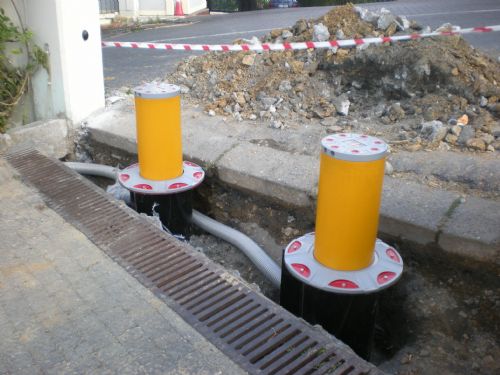 Mantar bariyerlerin üstünde güneş enerjili yol butonu mevcuttur.